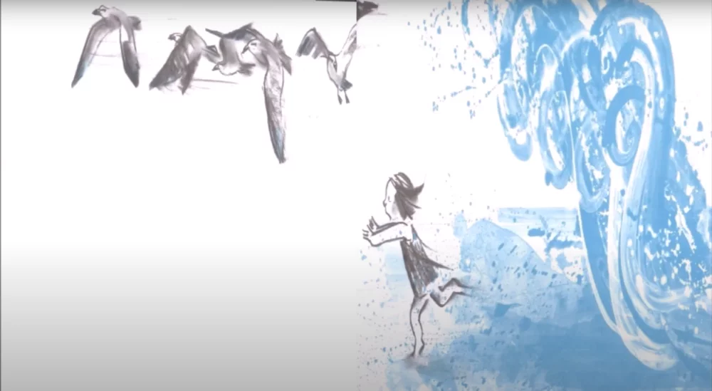 Wave is a wordless picturebook illustrated by Korean female writer and illustrator Suzy Lee. Since its publication in 2009, it has been acknowledged by numerous world-renowned awards for its illustrations and the meaning behind them. Before diving into the first question, we should begin by focusing on the fact that the main character, who is exploring nature playfully, is a girl. This is significant considering that the “past and present children’s and young adult literature has offered girls and boys few models of girls behaving confidently and competently outdoors” (Gurholt, 2018: 248) and that there has been unity between nature and masculinity showing masculine characters, usually boys, adventuring into the wild (243). The girl at the beach is first cautious around the waves but gradually becomes bolder, enjoying the experience with her senses and freely expressing her feelings without any worries. This part can be characterized as future girls who are “ambitious, independent girls who regard sports and outdoor activities as important arenas of self-definition” (Gurholt, 2018: 249). This depiction of new femininity counteracts the oppression of girls and women that is embedded in the traditional Korean culture, which is based on the Confucian philosophy. From a young age, children are taught to differentiate the roles of boys and girls. This raffects their perspectives on appearances and how to behave. While boys would participate in the outer world physically, girls are to engage in house related works (Cultural Encyclopedia, 2004; Jung, 1994).