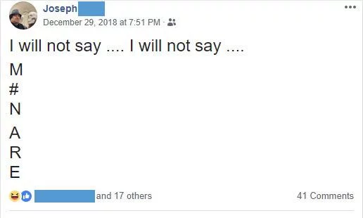 It was indeed that very day that Joseph went right back at it, writing the phrase in a post written from top to bottom, where each letter occupied a new line, presumably to “trick” the flagging system (Image 3)