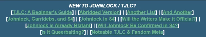 Another reason why knowledge is a necessary attribute within TJLC, is the fact that the community is heavily based on so-called ‘meta’. Within this fandom, the term, which is short for ‘meta-analysis’, is used to indicate analytical texts – ranging from short pieces to entire essays – that are written in order to understand symbolism and subtext in Sherlock, as well as to make predictions for future seasons (Supernatural Wiki, 2014). The following post, for example, provides links to several pieces of Johnlock/TJLC meta, including a guide and several lists for beginners, as well as meta surrounding season four, which was about to start airing the moment that this screenshot was made.