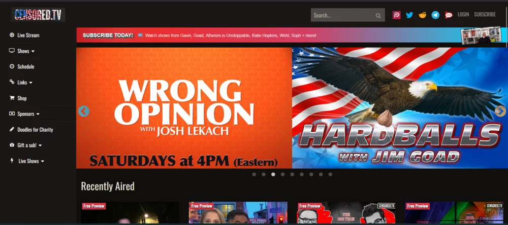 After being de-platformed of almost all social media, he created his own: the online video platform Censored.TV, where he hosts the podcast Get Off My Lawn. He is also active on Telegram, Parler, and Gab — the latter two known for their policies of “free speech” and for being a nest of right-wing extremists. As of December 2022, he has approximately 15k followers on Telegram, 27k on Gab, and more than 200k on Parler.