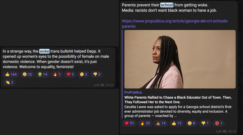 In this sense, McInnes also needs to create twisted messages using facts or news to further elevate its position. As we have seen before, McInnes is able to turn reality upside down in order to keep his 'anti-woke discourse' intact. In these two messages, the commentator takes the Johny Depp case out of context in order to put gender violence and the fight for trans rights, which is effectively a fight against gender as such, on the same level. In the current patriarchal context, this makes no sense. In his book of ideas, however, it does. He uses a similar strategy in the post of the right.