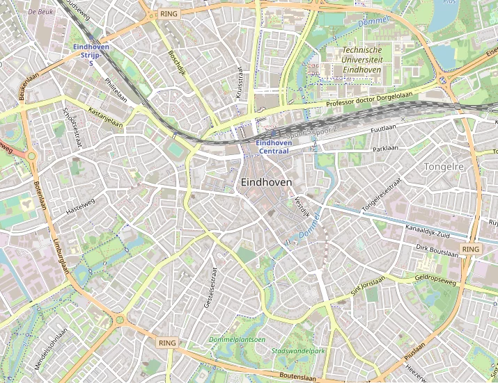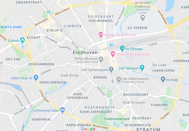 Like any map, Google Maps shows a partial perspective on the world. Invariably, the map-making motive coincides with the information that is displayed on the map: Google’s representation is focused on commercial interactions. Consider these two representations of the city of Eindhoven by Google Maps and OpenStreetMap. The distinction between the two becomes visible by noting the most eye-catching aspects on Google Maps: the symbols and names indicating companies. Furthermore, Google Maps depicts algorithmically generated highlighted areas which represent a high concentration of commercial activity. This representation corresponds with Google’s business model which is based on gathering and selling user data and providing advertisement opportunities for other companies. The map is designed to fit this business strategy.
