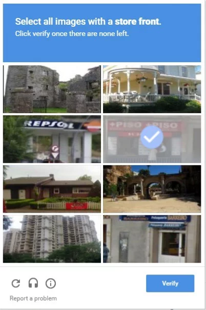 Further, to verify the outcomes of the OCR analysis, the verification software of reCAPTCHA is used. (McQuire 2019: 155) When stumbling upon this verification, users must select the images which depict a certain subject, such as a store front, from a collection of street view imagery. These selections are used to improve the process of OCR analysis of Street View data.