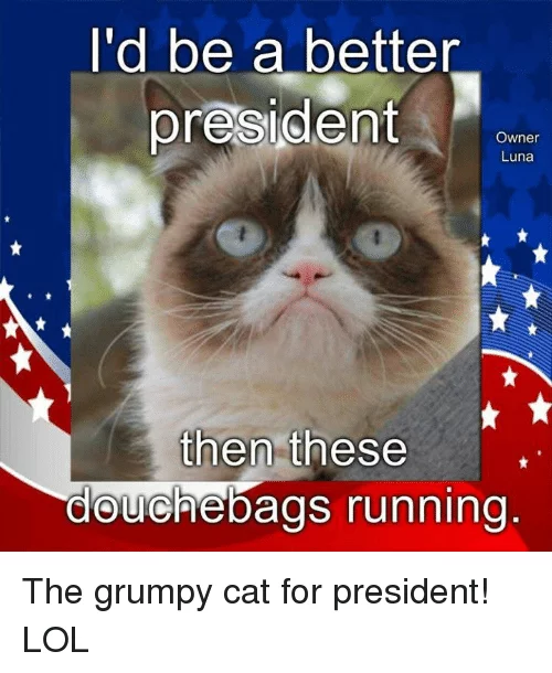 However, at the same time they can also be used to show one's dislike of the actual candidates by opting for Grumpy Cat because even he would be a better President than the candidates running. This is shown in Figure 3.