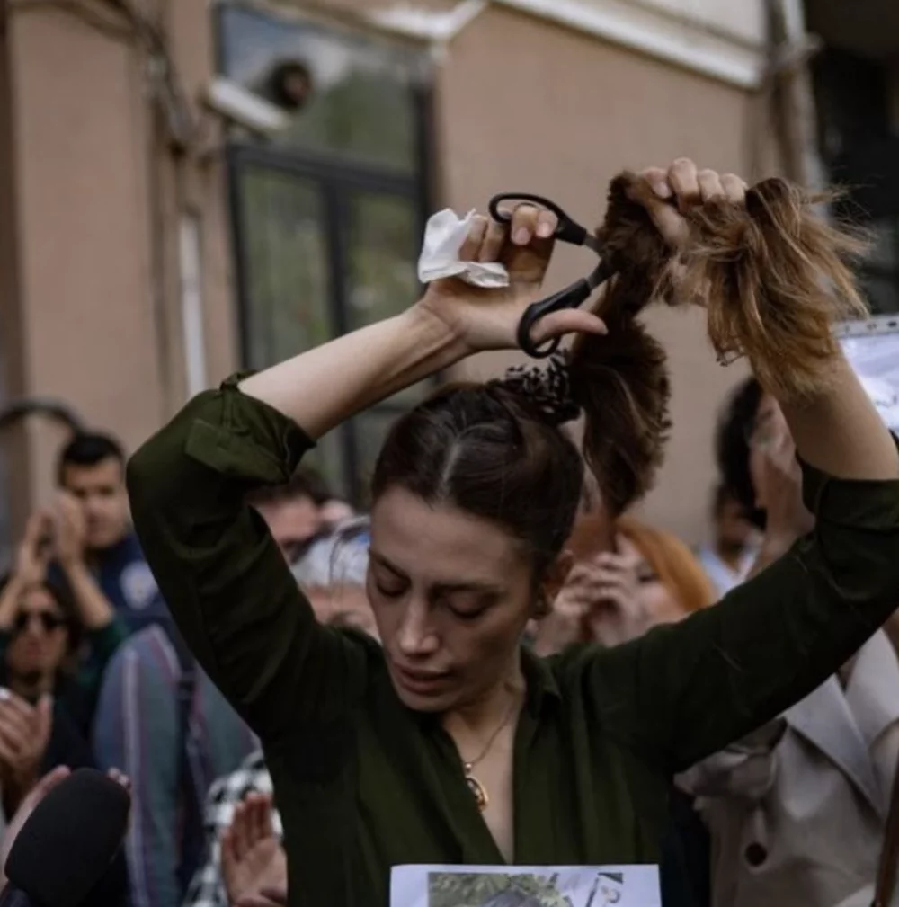 As an act of rebellion against their oppressors, they are cutting their hair, burning headscarves and going around the streets with uncovered hair.