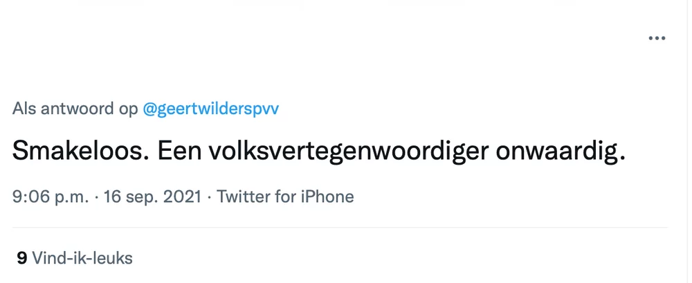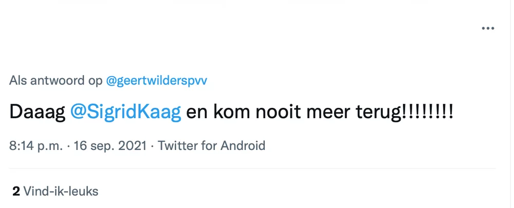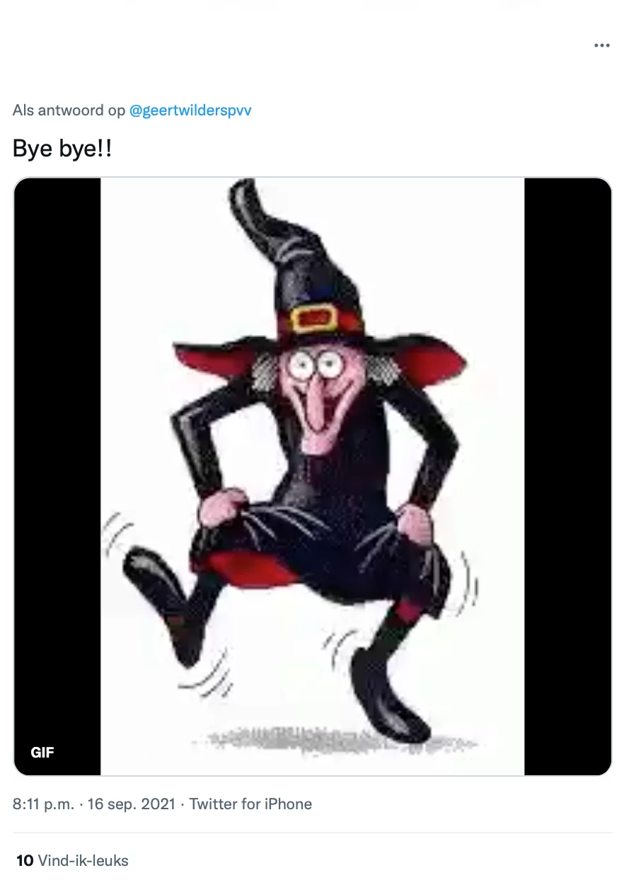 Wilders, G. [@geertwilderspvv]. (2021, 29 June). Heks. [Tweet]. Twitter.