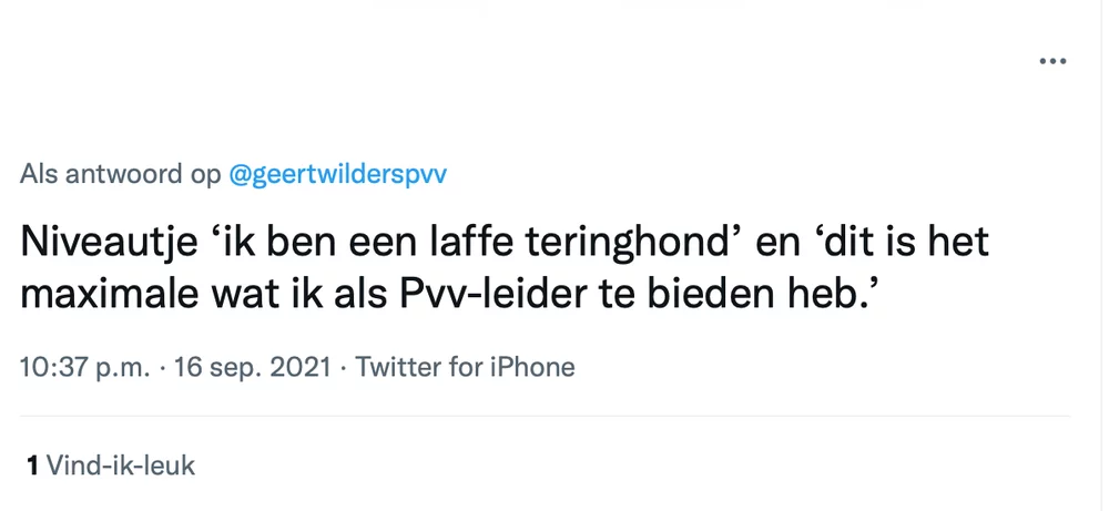 Wilders, G. [@geertwilderspvv]. (2021, 16 September). #hexit [Tweet]. Twitter.