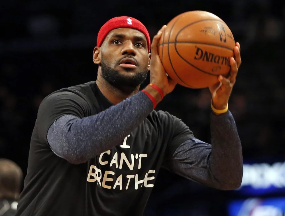 James wearing the iconic ''I can't breathe'' T-shirt during the warm-up before playing a match in New York.