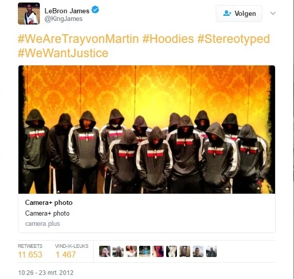 These statements from James are not an isolated case. Approximately five years ago James raised his voice for the first time after the innocent seventeen year old Trayvon Martin was killed by police officer George Zimmerman in Sanford, Florida. On this fatal day Martin was perceived as a threat because he was wearing a hoodie. The youngster, who was a big fan of James’ Miami Heat, was shot after leaving his house during the half time break of the NBA All-Star game. James took the initiative to make a powerful statement: the entire Miami Heat team posed for a picture all wearing the iconic hoodie sweatshirt. Subsequently he shared this picture via social media.