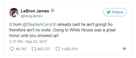 Hirschfeld - Davis, J., & Belson, K. (2017, September 23). Trump Attacks Warriors’ Curry. LeBron James’s Retort: ‘U Bum.’