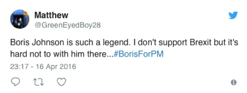 The rise of Nigel Farage and UKIP in 2013 was a major factor for Brexit. Farage started to gain millions of votes in the 2015 election. His frequent media appearances and his radical message helped establish the link between immigration and the EU in the public mind. When Johnson and Gove came out for Brexit, it gave a huge boost to the leave campaign. Them entering the stage changed the view of Brexit being a thing of very radical right-wingers. A popular personality like Johnson standing up for Brexit stirred the society into believing there would be a better Britain outside of the EU (Figure 13).