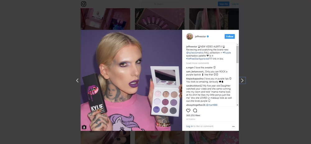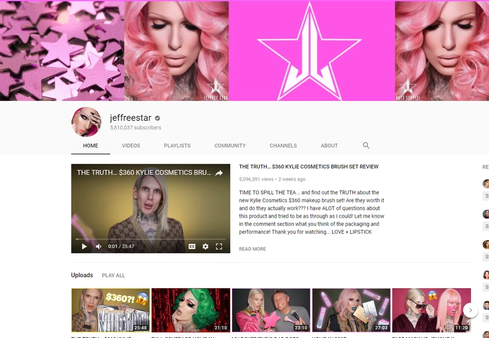 Jeffree Star became famous only through the online environment. By posting videos all the time, and by being a guy who uses make-up, he gained a lot of attention. Nowadays, Jeffree Star has a make-up brand of his own and has appeared on American television. These are the stages that moved up his career as a male make-up YouTuber to the highest scale. As Jeffree Star says in his videos: "I am a hot topic, I have always been outspoken, I am, you know, someone who looks different". With this statement he clearly shows support towards freedom of expression. Specifically, male make-up YouTubers are pro LGBTQ and they demolish the social gender roles.