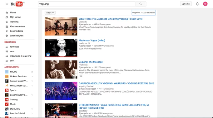 On YouTube, people can upload videos about voguing for the public to watch. When you search ‘’voguing’’ on YouTube you get about 75,000 results. And there are almost 1.5 million videos about how to vogue. There are also interviews and documentaries related to the dance. The video channel is a great way to access everything you want to know about the ballroom scene.