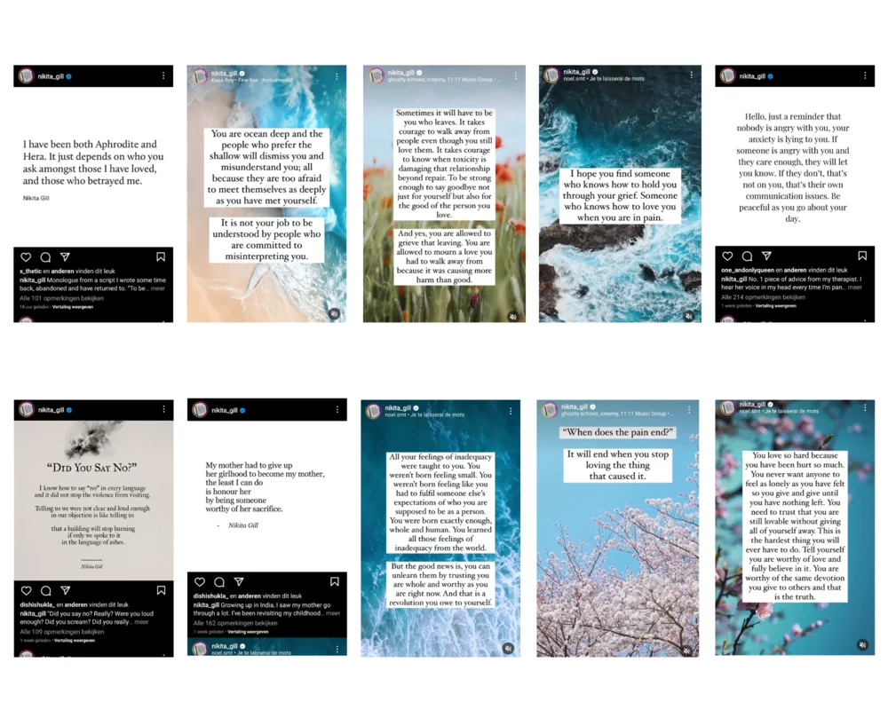 As is visible in the data, the ten poet-users have different ways of portraying their poetry. Four poet-users keep it simple. They only display the poem’s text in the image.