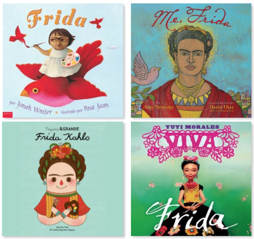 Frida (2002) werd geïllustreerd door de Spaanse Ana Juan, geschreven door de Amerikaanse prentenboekenauteur Jonah Winter en uitgegeven in New York. [3] Het prentenboek verscheen gelijktijdig in het Engels en het Spaans, vermoedelijk met het oog op een cultureel divers doelpubliek. [4] Frida viel meermaals in de prijzen (American Library Association - Notable Book, Americas Award Honor Book) en werd in tien talen vertaald. De auteurs belichten sleutelmomenten uit Frida’s leven, maar besteden vooral aandacht aan de kindertijd en jeugd van de artieste.