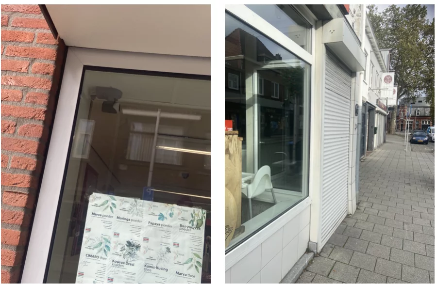 Even so many of these systems are very basic. Some smaller stores or restaurants even do not appear to have any protective measures such as cameras or blinds at all as can be seen in the images below. We can thus say that while there may not be a dividing line in absolute terms bigger companies seem to perform more surveillant actions and use more (complex) surveillance technologies.