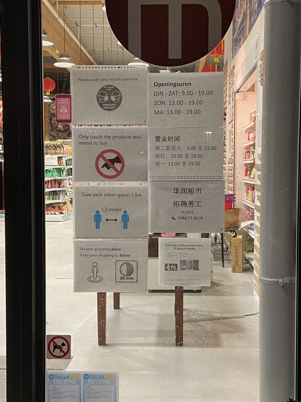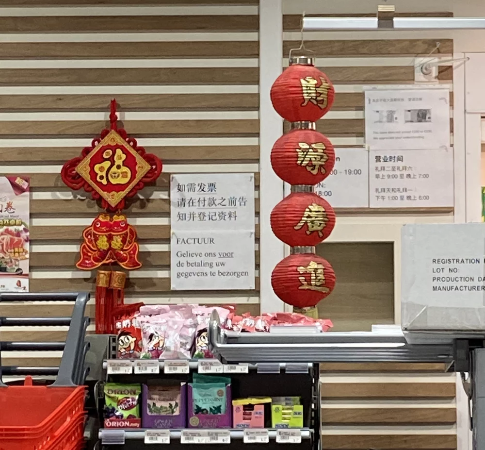The final shop we decided to examine is an Asian supermarket called ‘Asia & More 華潤超市,’ which is located in Leuven, a city in Belgium. Leuven is where the largest university in Belgium is located and with a population of close to 58.000 students, of which a little less than 10.000 students came in from abroad in 2019/20 and even more in the following academic year, you can say that the city is getting increasingly international (KU Leuven, 2019). On top of that, Leuven’s current population of people with Asian nationalities is nearly 6000, which does not include those who are ethnically Asian but have different nationalities (Leuven, n.d.). As shown below, the use of multilingual signs, therefore, indicates that they can be perceived by different audiences.