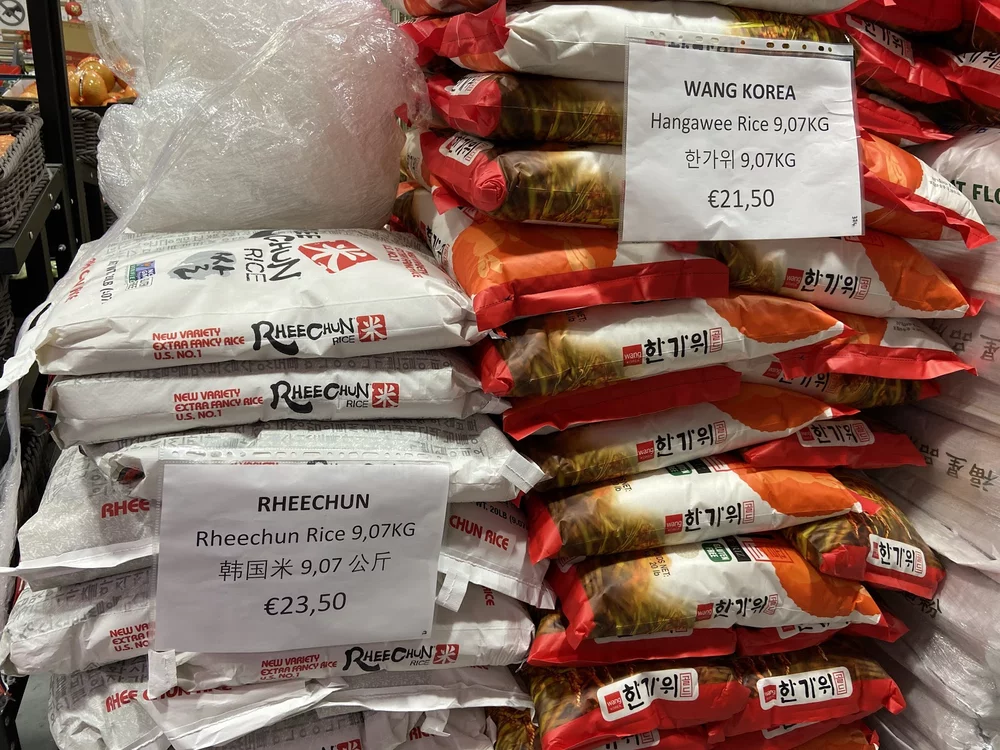 Upon searching for distinctive signs, we noticed papers utilized as price signs for the rice bags (Figure 5). We can see that the signs of the products are written both in English and in their languages of origin, namely Chinese and Korean respectively. Here, the use of English as a lingua franca connects both native English speakers as well as those who speak it as a foreign language. This helps customers who cannot read Dutch to understand the referential meaning. The store’s use of languages from where the products originate is used for effective communication with speakers of those languages. This is effective because they often make up most of their customers.