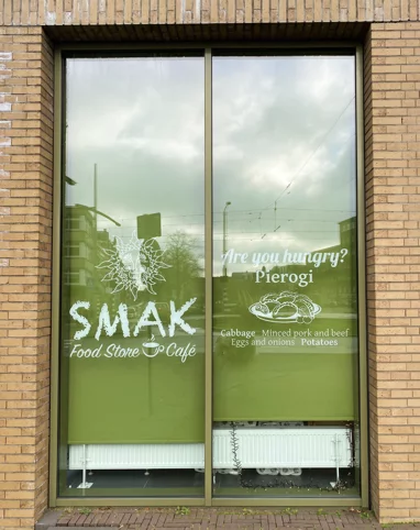 The name of the grocery store speaks for itself. ‘Smak’, from the Ukrainian language, means taste. However, it is not only a Ukrainian word. In Polish, Norwegian, and Swedish ‘smak’ has the same definition. But more importantly for our research, in Dutch, there is the word ‘smakelijk’, which means tasty. It looks like it has the same root as the word ‘smak’ and, therefore, it makes it appealing to Dutch citizens as well. From our point of view, it shows the future of the place, as it is developing and remaking for a broader audience.