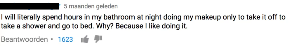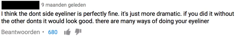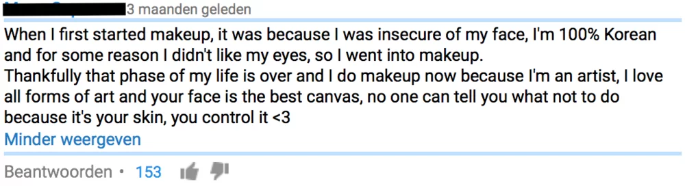 What Nikkie already said in the video is confirmed by other makeup lovers in the comments section (figure 7). Makeup lovers are not insecure about their face at all, as many non-makeup lovers might think. Some see the face as a canvas on which they can express their creativity. They do not care about what other people think of them, they just simply like to create different looks.