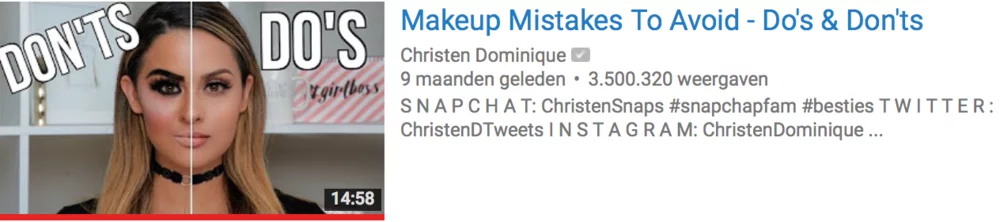 This is unlike the YouTube account of Nikkietutorials. Nikkie is also Dutch, but she chose to do her Yotube videos in English by which she crossed the language barrier. And she is successful: with her videos being accessible for more people she has been able to reach over 6,5 million makeup lovers on Youtube (data collected on the 21st of May) from all around the world. She is able to work on a global level instead of a national one.