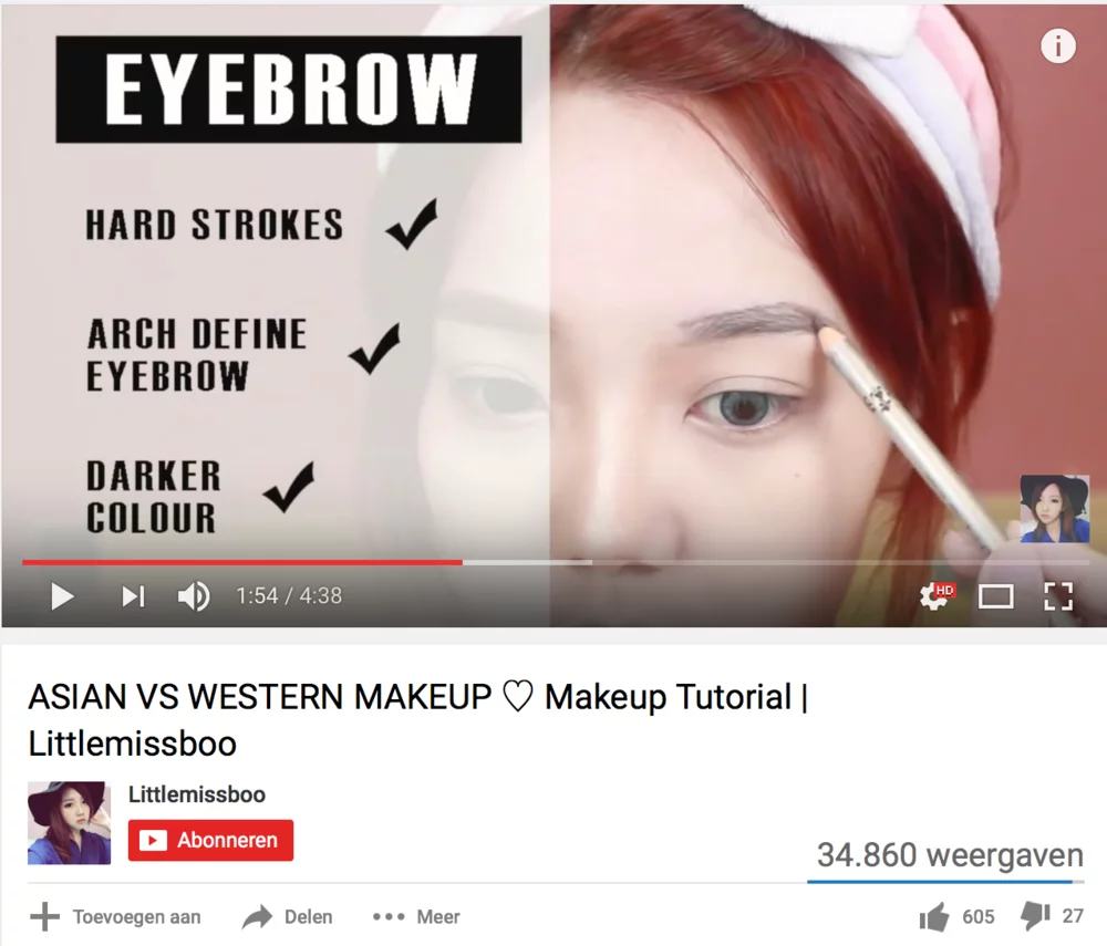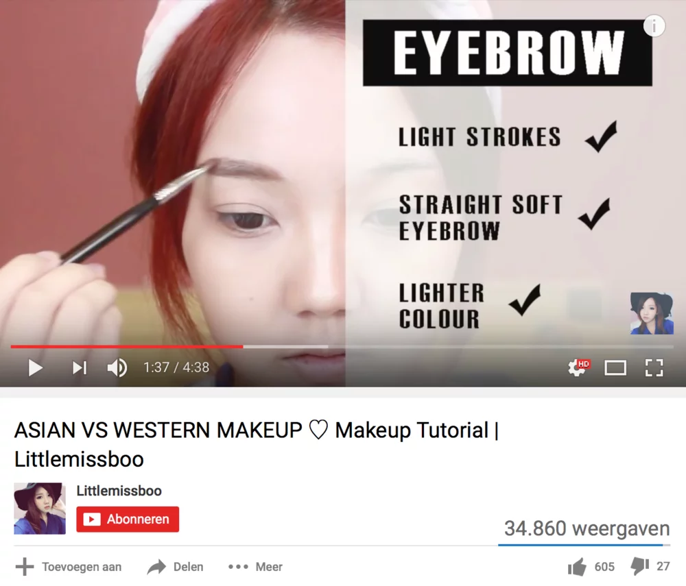 However, many Asian makeup lovers do have different norms and apply their makeup differently from Western makeup. Again, many videos (figur 4) can be found on YouTube in which a comparison is made between the two.