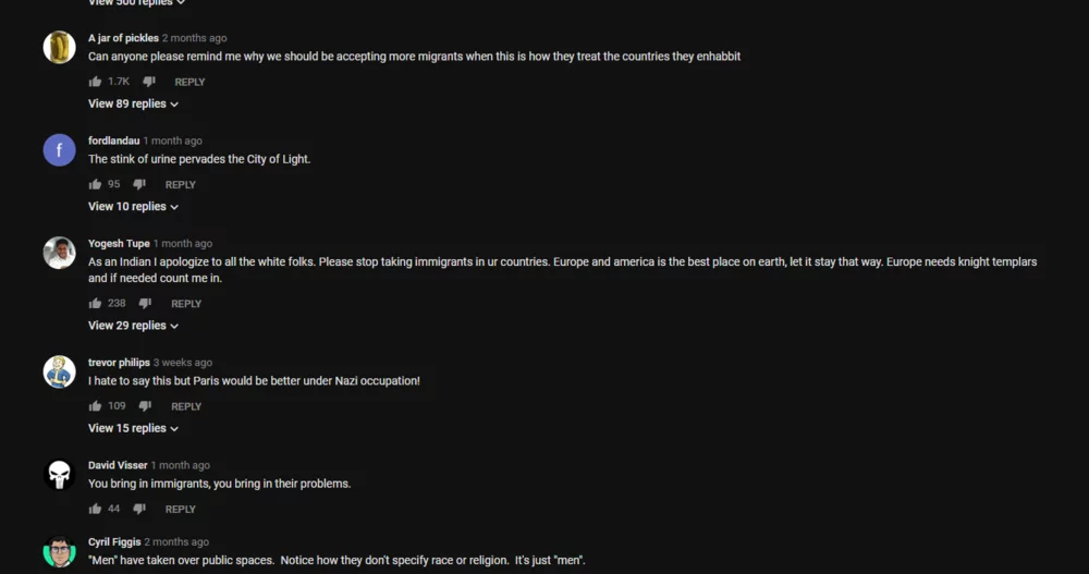Paul Joseph Watson's content clearly targets a New Right audience fed up with immigration and what they call Globalism. He speaks to a global niche in which his discourse is understood as 'telling the truth'. As it can be noticed from the hits and comments, a lot of people share the same political views. His comment section is filled with people agreeing with him, even offering more extreme opinions. It can be noticed that Neo-Nazism and references to the Knights Templar are made by his fans, meaning that a part of his audience might be inspired by the likes of Breivik. Looking at the views, likes, and comments below his movies, it is hard to deny that his message resonates with that very specific audience.