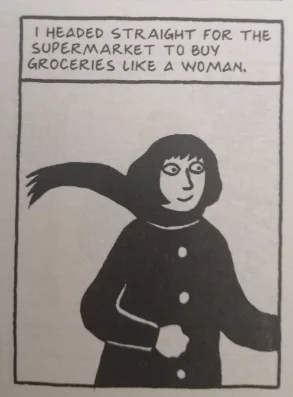 This picture has been analyzed a lot, including in ‘The Texture of Retracing in Marjane Satrapi’s Persepolis’ by Hillary Chute (2008) and in the TED talk by Micheal Chaney ‘How to read a graphic novel’ (2011). (Chaney, 2011) These two pictures combine both the contractualization of the connection between author and reader. She will give us a representation of who she was and the world around her, this is how she looked like back then.