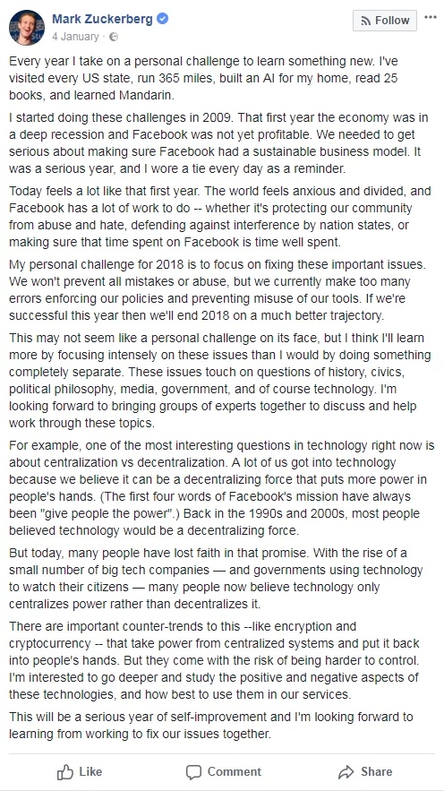 Facebook has acknowledged its dubious role in the spreading of (mis)information in the public sphere and in its new guidelines, Mark Zuckerberg announced some fundamental changes to Facebook’s algorithm. As he says: “we are not in the business of picking which issues the world should read about, but we are in the business of connecting people with the stories they find most meaningful.”