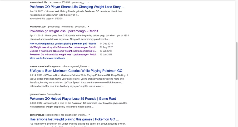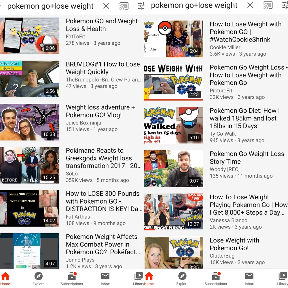 Through some rather straightforward keyword searches (e.g., “pokemon go+lose weight”) on YouTube, I found individuals who posted video content about how they became healthier through using Pokémon Go.
