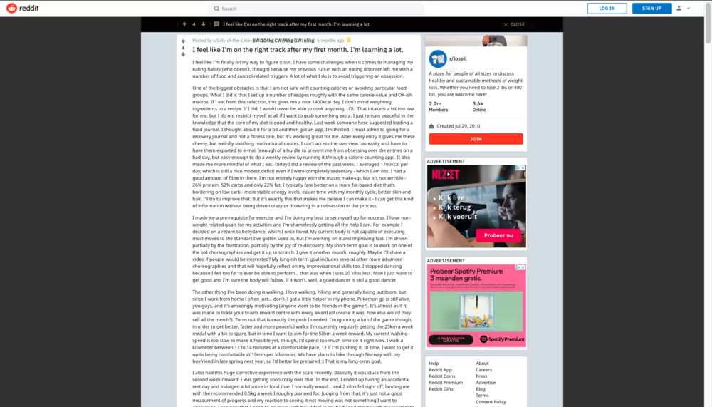 In a post titled “I feel like I’m on the right track after my first month. I’m learning a lot”, Lily-of-the-Lake offers us insight into their weight-loss journey. The redditor begins with some reflections on their diet changes, including what they are currently doing and hope to accomplish later on. They then inform us about their ongoing workout plans, which consist of relearning a belly dancing choreography and walking/hiking. What is noteworthy is that Lily-of-the-Lake then reports that they have been incoporating Pokémon Go into their outdoor walks. They have consistently received the “25km a week medal with a bit to spare” yet would like to receive the 50 kilometers a week medal. Additionally, the author reflects that their current walking speed is too slow to meet the fifty-kilometer-a-week goal, but they intend to gradually dial up their walking pace to reach the target mileage.