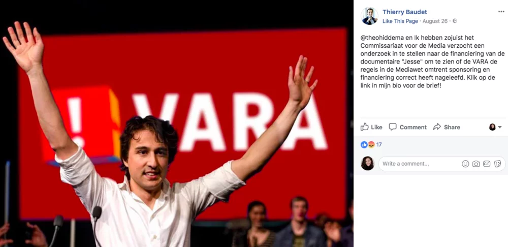 In the second public post, Figure 10, he is questioning the funding for the documentary about Jesse, a candidate of the opposing party, GroenLinks. Naturally this adds fuel to the fire as it is no longer about Baudet calling Jesse out, but about the two well-known political parties and their supporters who will inevitably get involved in the comment section to defend who they think is right. In addition to Baudet’s position on the ‘partijkartel’, he is suggesting that GroenLinks is corrupt. The post, which should have made more headlines as it’s about an active investigation and an accusation about corruption, received a mere 17 reactions, 16 of those in favour of what had been said. This is classical political move that is usually intended to shed light on a situation or topic politicians find to be unsuitable and an example of how campaigns hope citizens think twice about a politician's character before casting their vote in the next election round (Lempert and Silverstein).