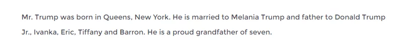 The screenshot above was taken off Donald Trump’s official website. On his website, it claims he is a proud grandfather of seven. It is also stated that he himself has five children, therefore giving the image that he himself is keen on family building.