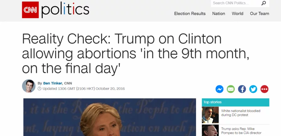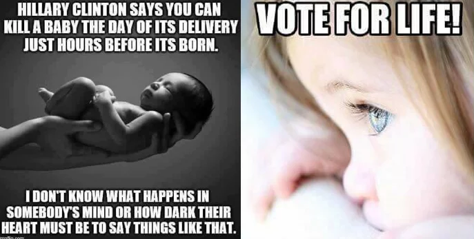 On the other hand, Trump denigrates Clinton in their debates by saying she thinks it is okay to stop a pregnancy when the mother is almost due. This is a form of negative messaging as Trump says something about Clinton’s standpoint on this issue, which is negative in the eyes of Christians.