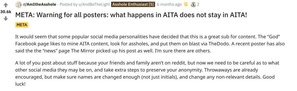 Today, r/AmItheAsshole is, mostly unwillingly, among the most prominent forums on Reddit, particularly in terms of engagement rates.