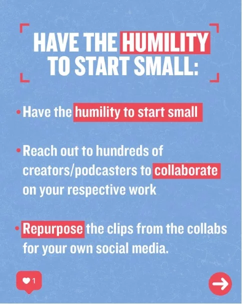 It also is obvious, that this is hardly something a beginner can do on their own, or at the very least not as a side job. This is a full-time job if you do not have a team at your disposal. For that last category of beginners, Vee has specific advice (see image 3). Even though he advices to start small, it is quite clear that even that ‘small start’ asks quite the time investment. Reaching out to hundreds of creators is not something that is done overnight. And then the actual work still has to start. The advice is also not immediately original or ground breaking, doing collabs is a tried and tested influencer practice: the internet is littered with advice on doing collabs. It is even widespread in the far-right margins of the internet (Lewis, 2018).