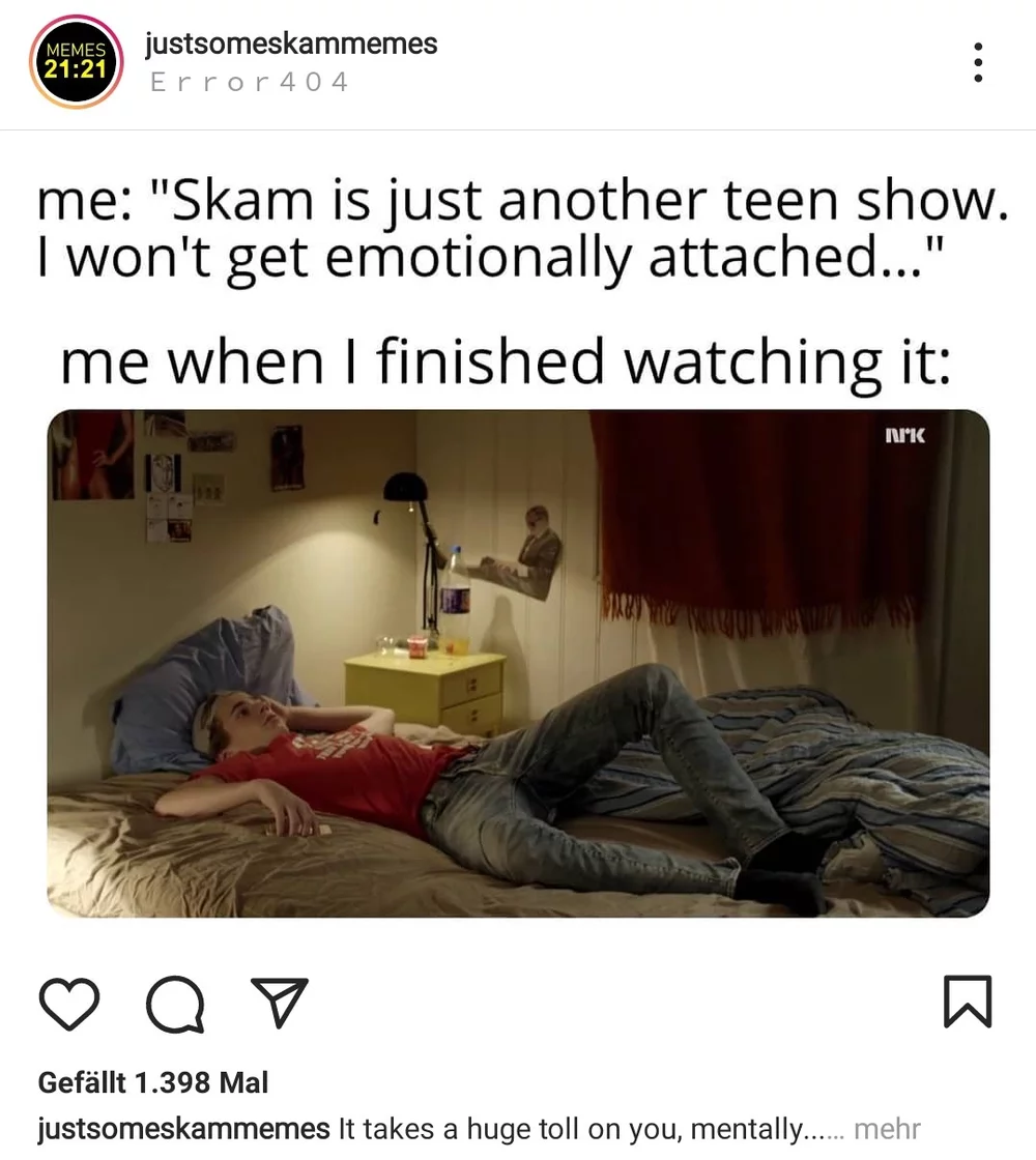 While the Norwegian show ended after the fourth season, remakes have appeared in countries such as the Netherlands, Belgium, Italy, France, Germany, and the USA. The multiplicity of shows established a sense of connection and an awareness for other cultures and languages across Europe with a strong international fan community. Right now, fans from across the world experience the seventh season of Druck, the German remake of SKAM, on Instagram and Youtube.