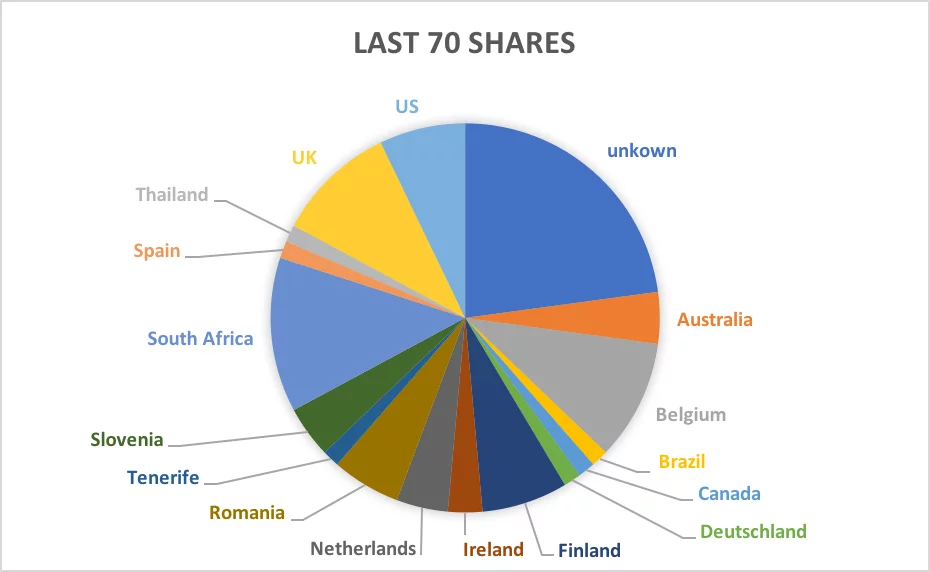 Kijken we naar de laatste 70 shares van de video (Juni 2018), dan zien we dat de Belgische profielen maar verantwoordelijk meer zijn voor 10% van de shares. 9 shares komen uit Zuid-Afrika, 7 uit de UK en 16 geven geen verblijfplaats aan. Opvallend is dat minimaal 16 profielen als globale Nieuw Rechtse activisten kunnen beschouwd worden. Deze profielen doen niets anders dan constant Nieuw Rechtse propaganda sharen en posten uit alle hoeken van de wereld.