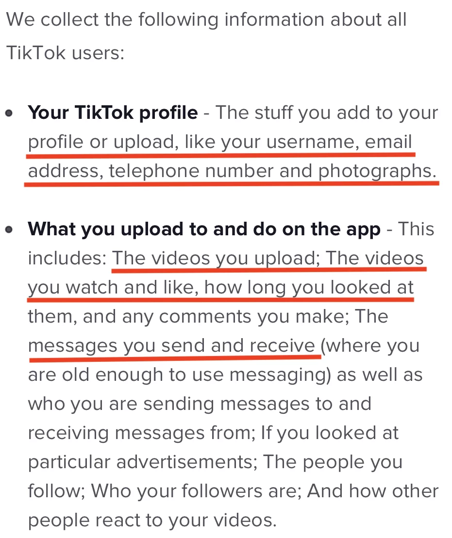 In conclusion, social networking sites are guilty of requiring and storing excessive amounts of information, with TikTok being one certain example. However, based on this article,  it is certain that Meta’s products are not behind in data collection,  also supporting the practice of extreme data processing.