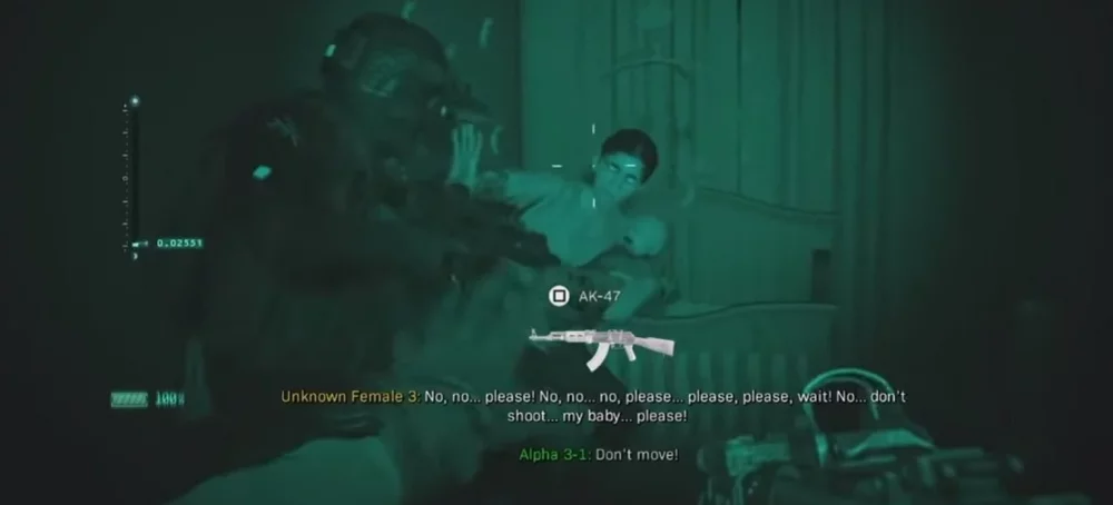 The rhetoric aspect of Call of Duty relies on the message it constantly presents to its players, there is an obvious inflection of war glorification and thrill of combat, but its processes are also nuanced. In one mission you are punished both procedurally and rhetorically, if the player chooses to shoot an unarmed civilian and her child the game restarts the mission with a message saying “Civilians are not combatants” If the player does this transgression of the games procedures another messaged states “Are you serious?” This is the programmer’s way of making a rhetorical claim about the real world that innocents should not be targeted in war through a process (the fact the game ceases to continue) in the video game.