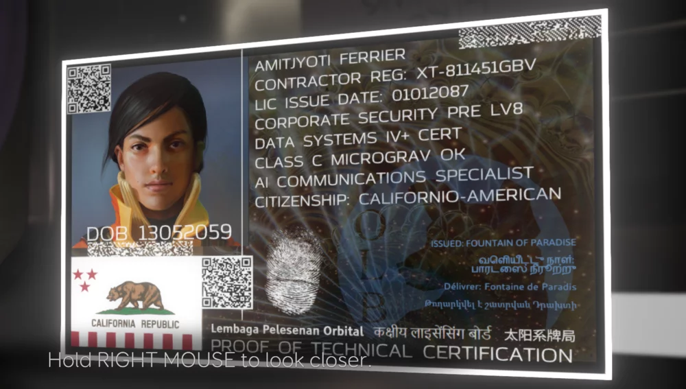 Upon arrival to the station the protagonist Amitjyoti Ferrier or ‘Amy’ is instructed to sync herself to the stations augmented reality system and to retrieve the stations processing module of the Operational Data Interface Network (ODIN) who is an artificial intelligence.