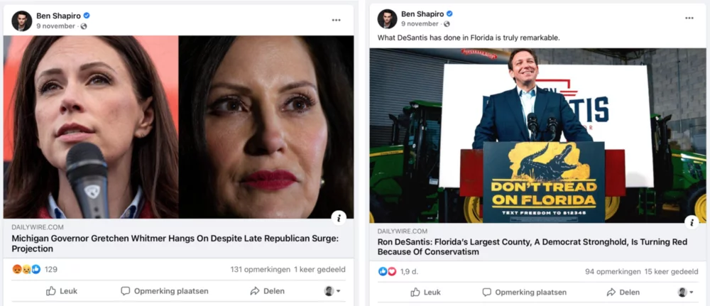 Here, we see the power of interface metrics as a site for meaning-making. Shapiro’s followers collectively give meaning to a post via their reactions. As a result, the post gets an extra layer of meaning. Not only do we see that a democrat has won the Michigan midterms, we also see that this is bad news according to ‘the people’. These interface metrics alleviate Shapiro from giving meaning to his news himself, helping him in keeping up his identity as an objective commentator.