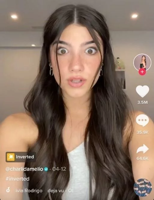 In April 2021, another TikTok trend emerged and went viral: show the public how symmetrical your face is using the inverted filter. The inverted version of you is supposed to be your ‘unflipped’ image, which is the way everyone else would perceive you. By using the sound of a sample of the song Déjà Vu by Olivia Rodrigo, together with using the inverted filter in a TikTok video, people can participate in the trend. Trends become trends because they fit in the logic of being on social media: people want to fit in and want to be part of something popular they see happening.