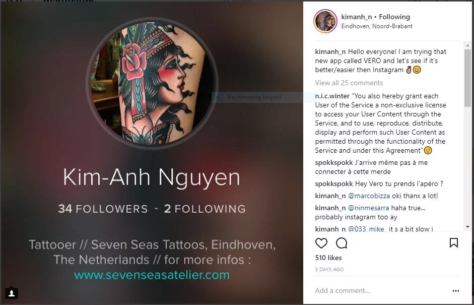 The app appears to attract people who wish to reach an unfiltered audience and care about privacy. Tattoo artists for instance, who want to show each and every tattoo to their followers, have switched from one app to the other and have started to use Vero.