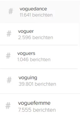 After searching for hashtags linked to voguing on Instagram (figure 10), we discovered that also on that platform there are at least over 62,000 posts about it.