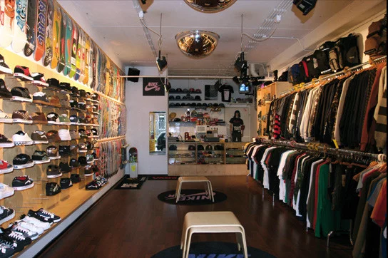 Stereotypical skater clothing includes baggy trousers and t-shirts as well as a specific type of shoes that are associated with the skater community (see Figure 1). According to members of the community, this stereotypical idea still applies to the contemporary group found in Eindhoven. The skate store 100% Skateboardshop in Eindhoven (Figure 2) is regarded by skaters as a store that sells acceptable and authentic skater products, selling brands like Thrasher, Addidas, Vans, Dickies and Independent. The clothing that is considered authentic is thus brand-specific, but this does not seem to be the most important in a skater's identity. Clothes and shoes that have been worn by skateboarders since the 1970s have been picked up by the mainstream as a commodity nowadays. For this reason, clothing is not seen as the main emblem in the organization of a skater’s identity anymore.