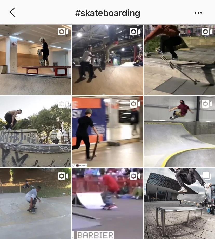 With every setting and post on a social media profile, one forms an online identity, which Sundén (1995) describes (in It's Complicated) as "people typing themselves into being''. In the context of Instagram, skaters mostly portray their identity in terms of pictures. All the skaters in Eindhoven that I interviewed post a good amount of (comparable) photos and videos with their skateboard (similar to those seen in Figure 4), clearly wishing to be recognized as a skater. The respondents claimed to not post this content to be seen as a real skater, but to show their tricks and skills with skateboarding. But as they also said before, intention – having a passion for skateboarding – is the most important identity feature for one to be a real skater. Besides that, the clothing worn in the posts also conforms to the identity norms mentioned above. The skaters might have an unconscious desire to be recognized by their peers as a real member of the (sub)group (or become famous and picked up by brands), as all posts within subgroups are quite similar.