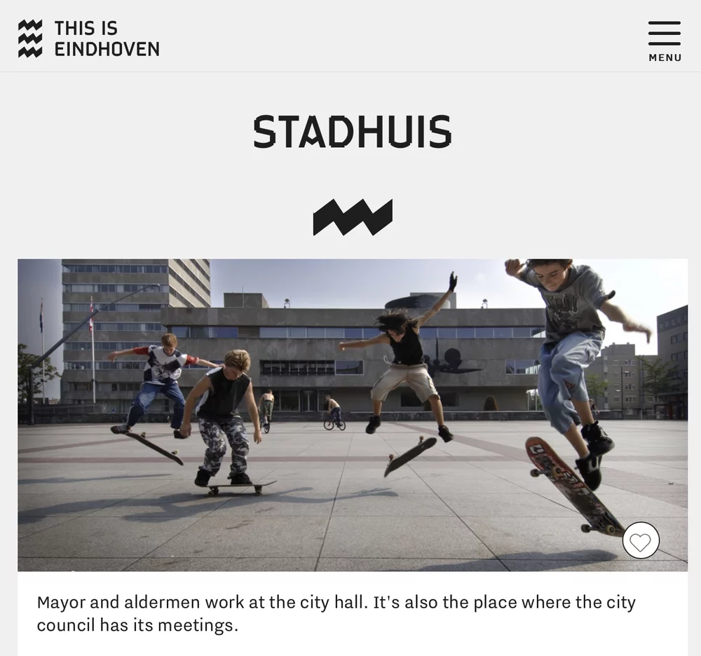 Skaters in Eindhoven are part of a global niched culture while also having their own local features. Accounts that post content like that presented in Figure 4 act as crusaders on a global level, creating norms on what is "cool" and what not. But features like the skater shop in Eindhoven (Figure 2) add a local center of normativity. The skater identity is a subscription as they self-identity as a member of the group and also represent themselves this way (on the internet). But besides this subscription, the skater identity is also an ascription as the majority in Eindhoven sees them as a group. Even the city's official website shows their connectedness between the city hall square and Eindhoven's skaters, as seen in Figure 5.