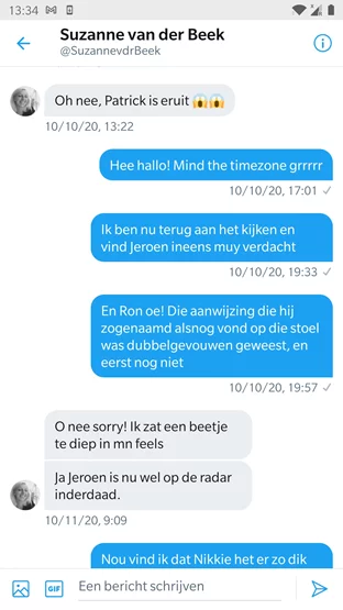 These exchanges take place across a range of platforms that are part of the show’s ever-growing franchise, like the official website with interactive forum, the talk show Moltalk, the Wie Is de Mol? app, a weekly podcast on Radio 2 , the YouTube show Niet de Mol in which Splinter Chabot talks to the eliminated contestants, social media platforms (@IkBenDeMol [“@IAmTheMole”]), etc.). Besides, there are many fan-initiated media objects such as YouTube channels.